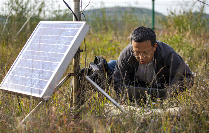 9月20日水保所神木站站长樊军在检查小型气象观测站的运行情况。陕西日报记者 赵晨摄
