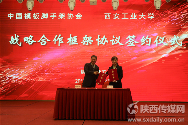 会上,中国模板脚手架协会理事长陆贻杰和西安工业大学建筑工程学院党委书记张英代表协会与学校签订了战略合作框架协议。大会为17家诚实守信企业和20篇优秀科技论文获得者颁奖。西安工业大学选送的1篇论文获得一等奖,3篇论文获得二等奖。