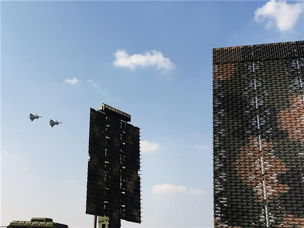 在庆祝人民空军成立70周年航空开放活动上,空军歼-20双机编队飞过新型雷达上空(10月19日摄)。新华社发(解瑾 摄)
