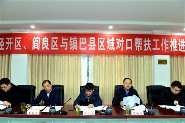 11月15日上午,经开区、阎良区与镇巴县召开区域对口帮扶工作推进会,会议由叶稳太主持。魏强介绍了镇巴县经济社会发展和脱贫攻坚工作开展情况。随后,经开区、阎良区分别介绍了对口帮扶工作的进展情况以及今后工作重点,并表示将在资金、产业、人才智力等方面加强支持和帮助,希望两地在下一步对口帮扶工作中,进一步深化交流合作,聚焦精准扶贫,精准脱贫,共同做好对镇巴的对口帮扶工作,确保如期圆满完成脱贫攻坚工作任务。