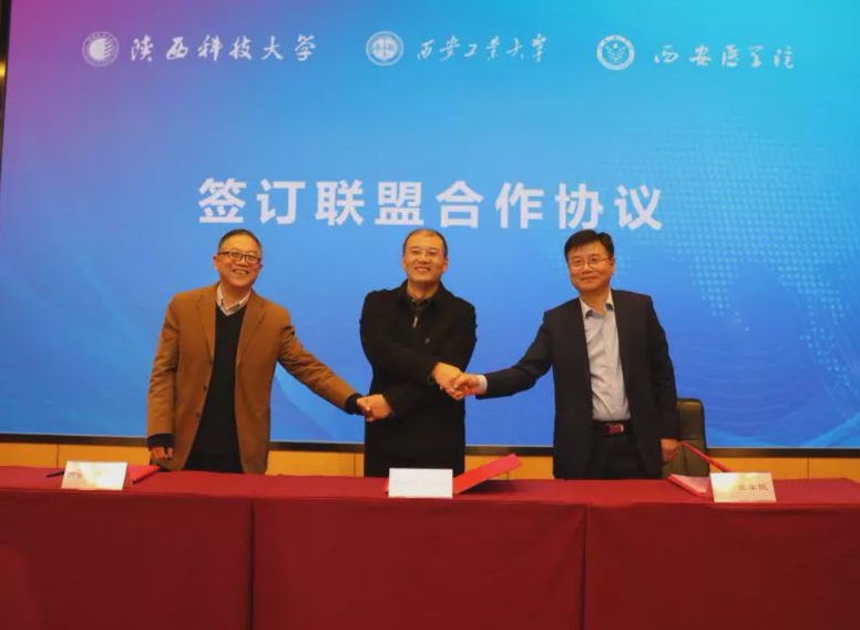 成立大会上,马建中、雷亚萍、杨帆代表三校共同签订了《陕西科技大学 西安工业大学 西安医学院未央高校联盟合作框架协议》,李志健、陈桦、姚文柱签订了《教学督导协议》《图书资源共享协议》《校医院合作协议》等三个分协议,与会领导嘉宾上台共同推动启动杆,启动未央高校联盟,标志着启动联盟合作各项工作实质性开展。