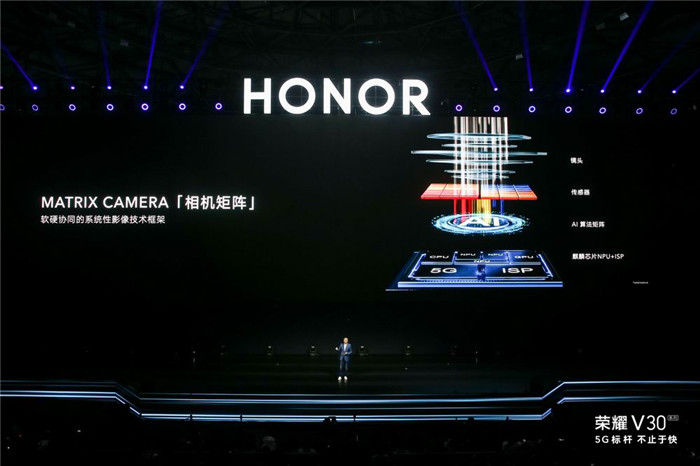 打破影像线性发展瓶颈大幅提升的影像能力是荣耀V30在5G之外的另一大看点。此前在网络上已经有传言的Matrix Camera突破性相机矩阵得到了赵明的证实,这是一种软硬协同的技术框架,通过分布式的RAW域AI算法矩阵,借助自研达芬奇架构NPU和麒麟ISP强大处理能力,与联合设计的光学系统深度融合,带来综合影像能力质的提升。其中包括全方位的影像能力提升,例如可以媲美亿级像素的超清模式;极暗光下的高感光能力与低噪点控制,ISO超感光能力高达409600;电影级五轴视频智慧防抖;突破性的视频HDR能力;以及此前已经被曝光过的卓越暗光摄像能力。