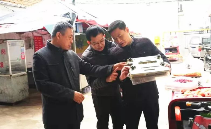 检查组全面细致检查各集贸市场是否建立计量管理制度、是否配备计量管理人员、是否合理配备公平秤、市场内经营户的电子计价秤是否使用经过检定、电子秤检定合格标志铅封是否完好等重要事项,并重点抽查两家市场鲜肉、水产等经营户在用的电子秤38台。