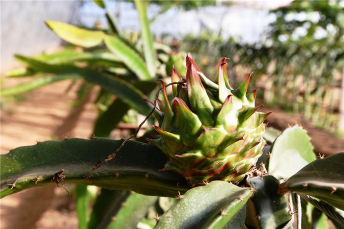位于揉谷镇青皮她园的火龙果,充分的水分充盈着没割过肉吸饱,咬一口下去,柔软中带着小籽的爽脆。这里已经引进种植了20余种火龙果新品种,像黄皮白心的燕窝果、黄皮红心的白水晶,以及以色列黄龙、蜜玄龙等优质新品种均在这里试种成功。