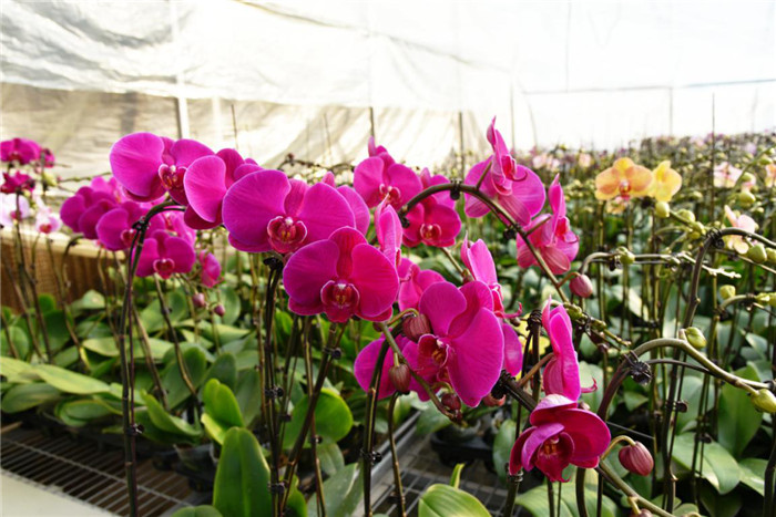 “画笔尖尖破绿纱,靛蓝蝶翼舞朝霞。”“枝头袅袅总多情,梁祝翩翩月影中。”总有不少诗歌为她称赞,粉红、洁白、淡绿色的蝴蝶兰在田间生长,像趴在嫩枝上的蝴蝶一般,久久不肯离去,含苞待放的花骨朵儿,更是让这个冬日多了一分生机。