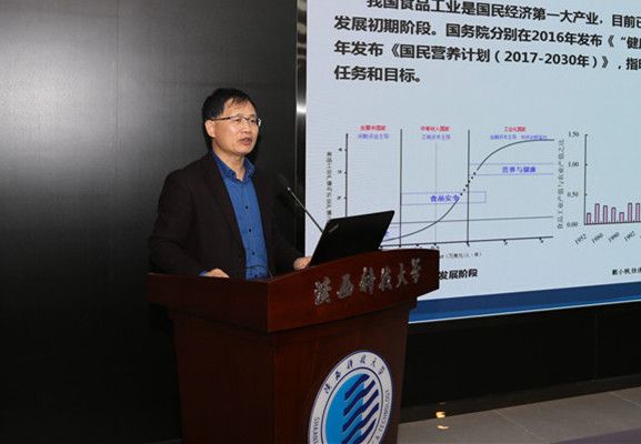陕西科技大学校长马建中致辞,他介绍了陕西科技大学三创两迁的历史,以及近年来学校在学术和科研等方面取得的成绩,尤其是学校全力支持食品学科吴清平院士工作室的发展,充分发挥吴院士的高端引领和集聚效应方面的工作情况和进展。