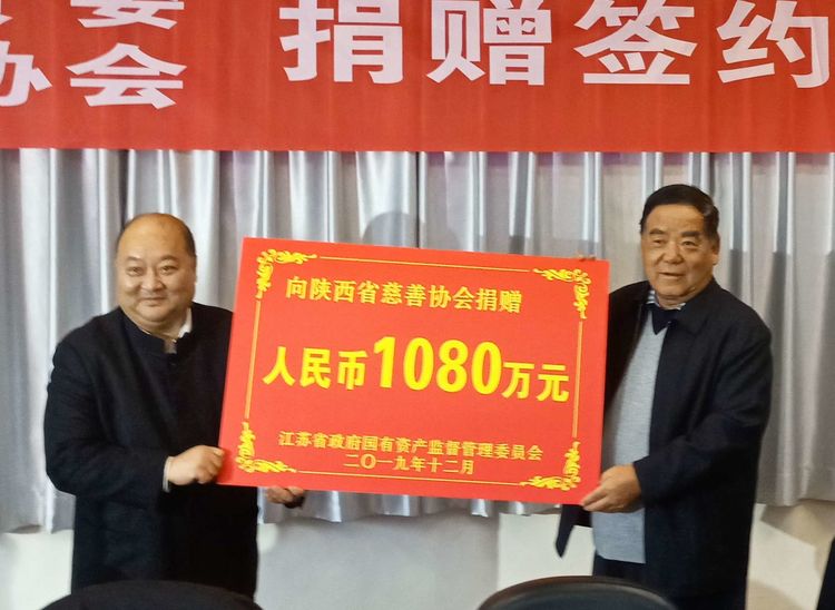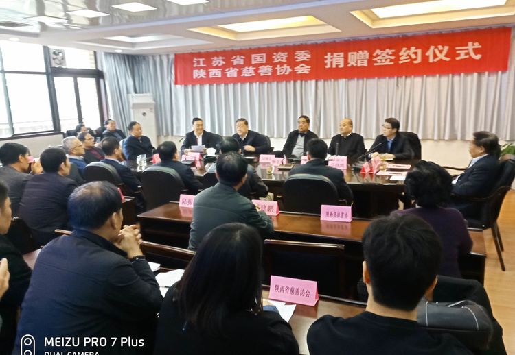 仪式上,江苏省国资委一级巡视员王宁生与陕西省慈善协会副会长张凤英签订捐赠协议。共捐赠1780万元,其中江苏省国资委系统捐赠资金1080万元,江苏省工商联系统捐赠500万元,江苏省总工会捐赠150万元,江苏省科协捐赠50万元。此次捐赠主要资助陕西省建档立卡贫困户的大学新生。王宁生巡视向刘维隆会长递交捐赠示意牌;吴前进顾问向捐赠方颁发了荣誉证书和纪念牌匾。