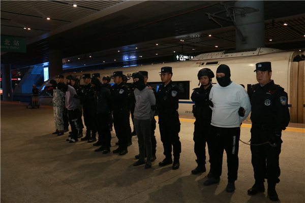 12月27日22时许,杨凌示范区公安局办案民警将5名犯罪嫌疑人押解至西安北客站。