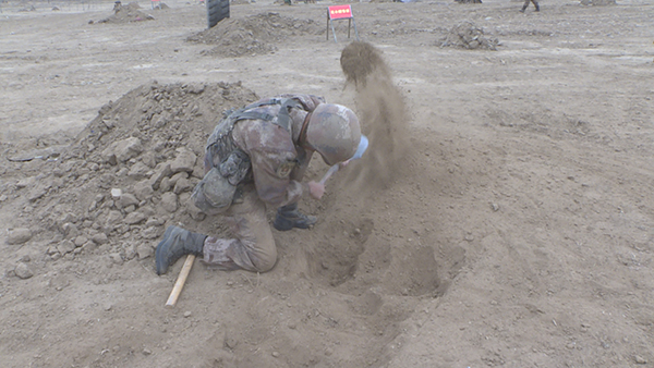 掩体构筑与伪装课目作为基础常训课目,具有较强的实战应用性。但也是成绩不合格人数最多的科目之一。高原入冬后冻土层较多,战士们很难挖出一个成型的掩坑。掩体构筑科目示范讲解员从位置选择到用锹技巧,从胸墙堆砌到伪装要领,深入浅出的讲解破解日常训练中的难题。