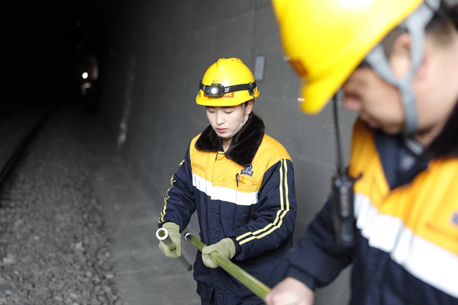 如今春运又到,除了日常设备检修、巡视工作外,工区还负责着12个隧道每日3次的打冰任务。虽是女工,但不搞特殊,每日步行近10公里,扛着重重的打冰杆,往返于群山隧岭之间,邓聪也是打冰主力之一。