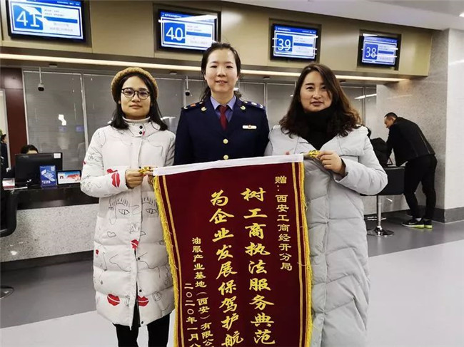 日前,西安工商经开分局注册科迎来喜报,油服产业基地(西安)有限公司为窗口的同志送来了锦旗,感谢窗口工作人员在该企业注册登记过程中提供的高效服务。