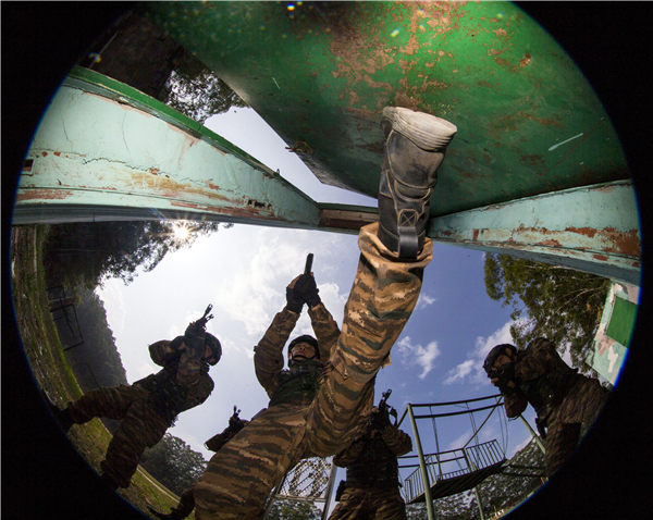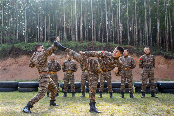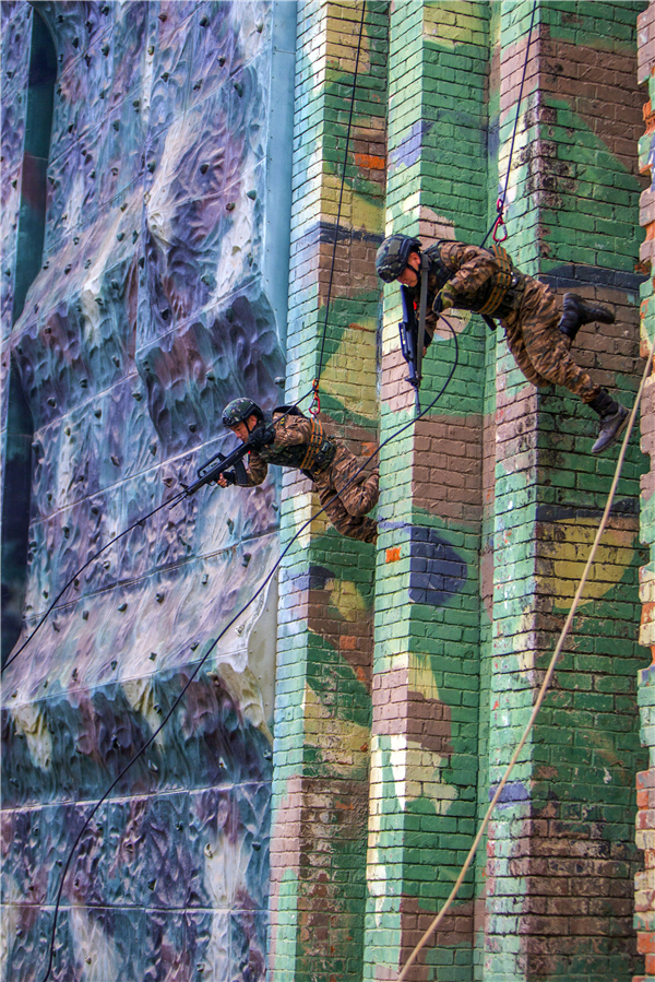武警广西总队机动支队近日紧贴使命任务,从难从严组织特战队员开展战术、攀登、特战小队综合演练等多项实战化课目,全面锤炼特战队员单兵技战术水平与协同作战能力,树立起新年度军事训练向实战化聚焦的鲜明导向。(图文:刘明、余海洋)