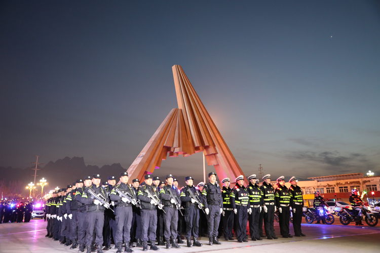 当日19时,誓师大会正式开始。该局280名民警划分为巡特警、交警、刑警、机关、派出所五个方阵,他们喊着嘹亮的口号、迈着整齐的步伐有序进入会场。民警们佩戴单警装备、执法记录仪、执勤臂章、肩灯,用最昂扬的斗志、最威武的阵容、最精良的装备、最严明的纪律,向全市人民展示了公安民警守护平安华阴、维护社会安宁的能力和决心。