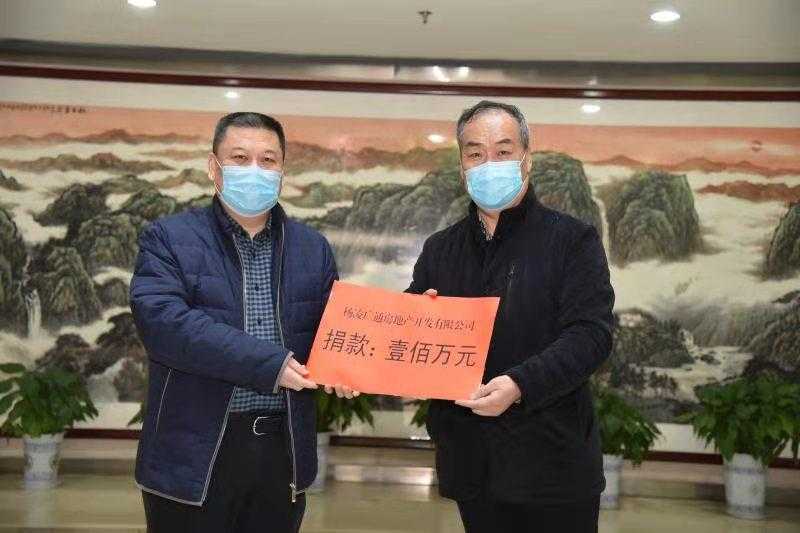 万众一心,众志成城。1月31日下午,杨凌广通房地产开发有限公司向杨凌示范区管委会捐赠抗击疫情款100万元,以实际行动践行社会责任与担当。