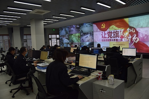 民警只有一个心愿:让信息、数据多跑路,让民警少受到疫情的伤害,给人民群众带来平安。指挥中心大屏幕上“让党旗在防控疫情斗争第一线上高高飘扬”时刻激励着这支特殊的队伍,勇作百姓平安的“守更人”。