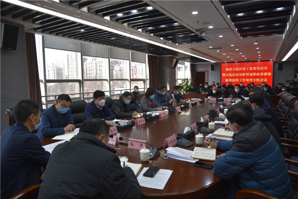 新冠疫情发生后,杨凌示范区高度重视,第一时间召开党工委专题会议,传达学习习近平总书记重要讲话、指示和中省会议精神,安排部署落实应对措施,及时下发《关于进一步加强应对新型冠状病毒感染的肺炎疫情联防联控工作机制的通知》,成立了以党工委书记李婧,党工委副书记、管委会常务副主任李九红为双组长的应对疫情工作领导小组,迅速制定防控措施,建立“一办九组、两级联动、四级联防”等工作机制。针对与湖北相关三类人员排查管控、交通要道防控、医疗救护准备、村(组)社区排查等重点工作,确定了加强源头管控、减少聚集、关停公共场所等12项具体的工作措施,建立了每日情况报告、疫情研判、网格化管理等5项制度。