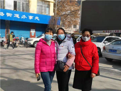 西安市新城区太华路街道纱厂东街社区书记刘桂梅(左)、八府庄社区书记马春香(中)、东童村社区书记王新萍合影 摄影 周扬