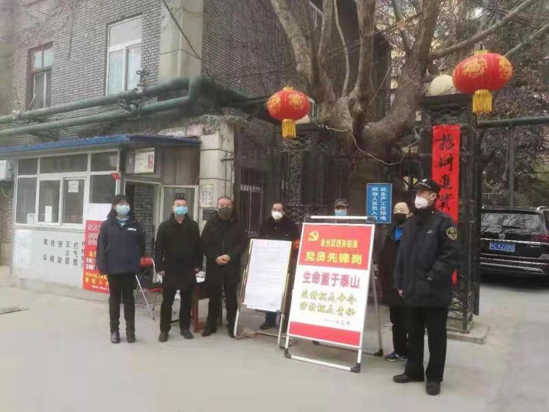 生命重于泰山,疫情就是命令,防控就是责任。西关街道宝福路东社区党支部在各级党委的坚强领导下,按照街道党工委的周密部署,把人民群众的生命安全和身体健康放在第一位,紧紧依靠人民、坚定信心、科学防治,团结带领辖区单位、物业公司、家委会和广大群众为打赢这场没有硝烟的疫情防控阻击战而战斗。(记者 王爽 通讯员 赵兰)