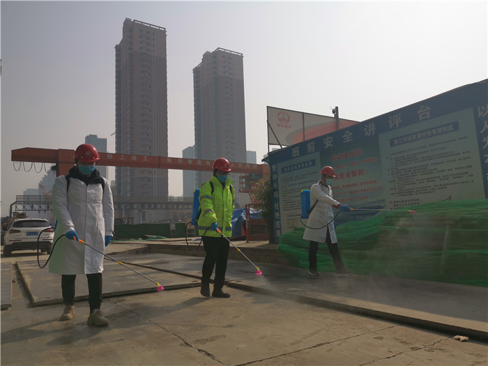 该项目部把疫情防控作为当前最重要的工作来抓。响应政府动员令,为做好防控疫情,迅速成立抗击疫情工作领导小组。同时,建立疫情期间的人员管理制度,对已经返岗到岗人员,及时填写返岗人员健康登记表和统计表,并按要求进行隔离14天,一切指标无异常才可上岗。对人员用餐由厨师分开装盒饭分发到个人,防止聚集用餐;对住宿坚持做到单人单间隔离住宿;对人员每日体温检测登记,对施工现场每日巡查消杀两次等进行详细的规划和责任落实。坚决打赢疫情防控狙击战。