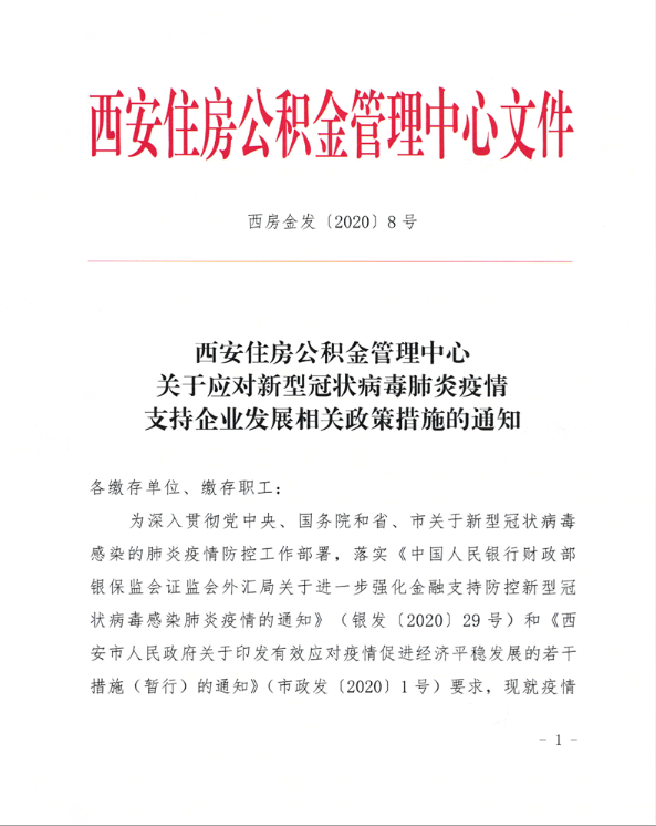 2月9日,西安住房公积金管理中心发文,关于疫情期间各单位和职工缴存公积金的具体情况出台五点应对措施: