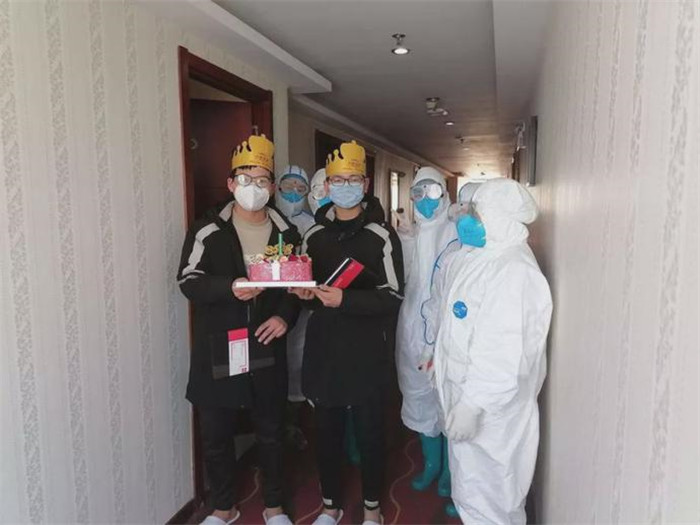 疫情无情人有情,人间自有真情在。2月13日,在泾河新城住宿服务站,上演了惊喜又感人的一幕,住宿服务站的医务人员为一对双胞胎送上了生日蛋糕,过了一个特殊的17岁生日。