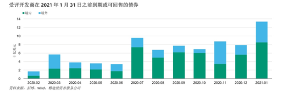 据穆迪最新统计数据,27家受评房企今年1月份境外债券发行额高达165亿美元(约合1152亿元人民币),不仅高于2019年58亿美元(约合405亿元人民币)月均水平,也刷新了2019年1月份111亿美元(约合775亿元人民币)的历史月度纪录。