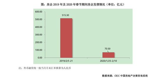 据克而瑞数据,今年1月25日至2月10日这17天时间,95家典型房企只完成4笔发债融资,发债规模约70.5亿元,与2019年春节相对应时段相比,发债规模骤降86%。