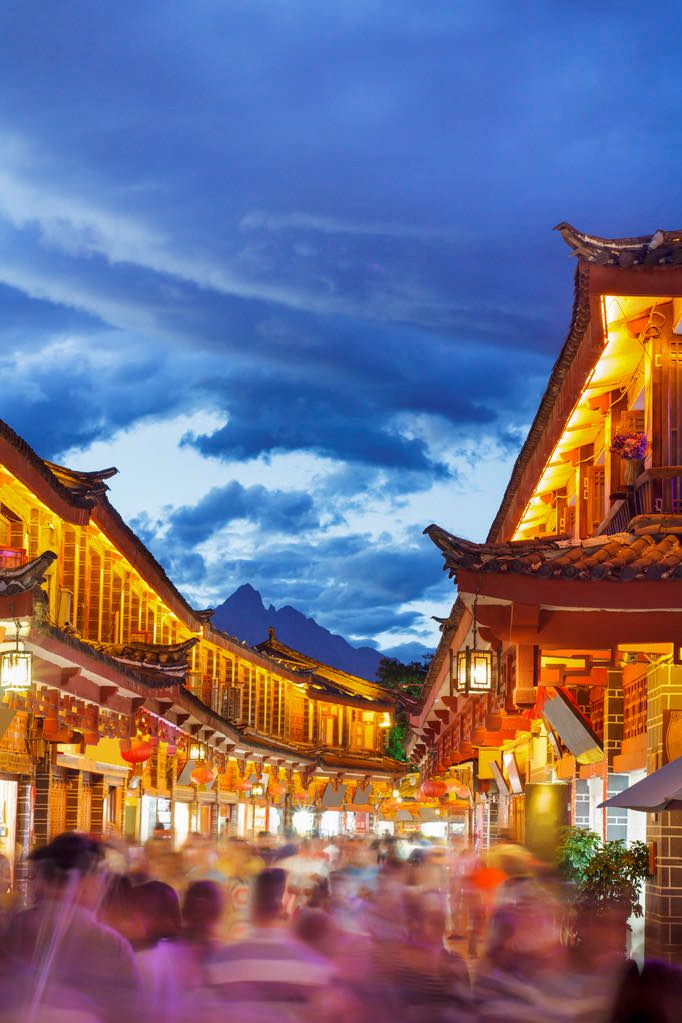 木楼青瓦,古街石巷小桥流水,站在古城东大街上举头即可遥望玉龙雪山。