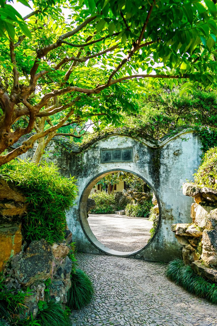 园中小径曲折,一重重门廊、镂空图案的石墙......处处体现着江南水乡的韵味。