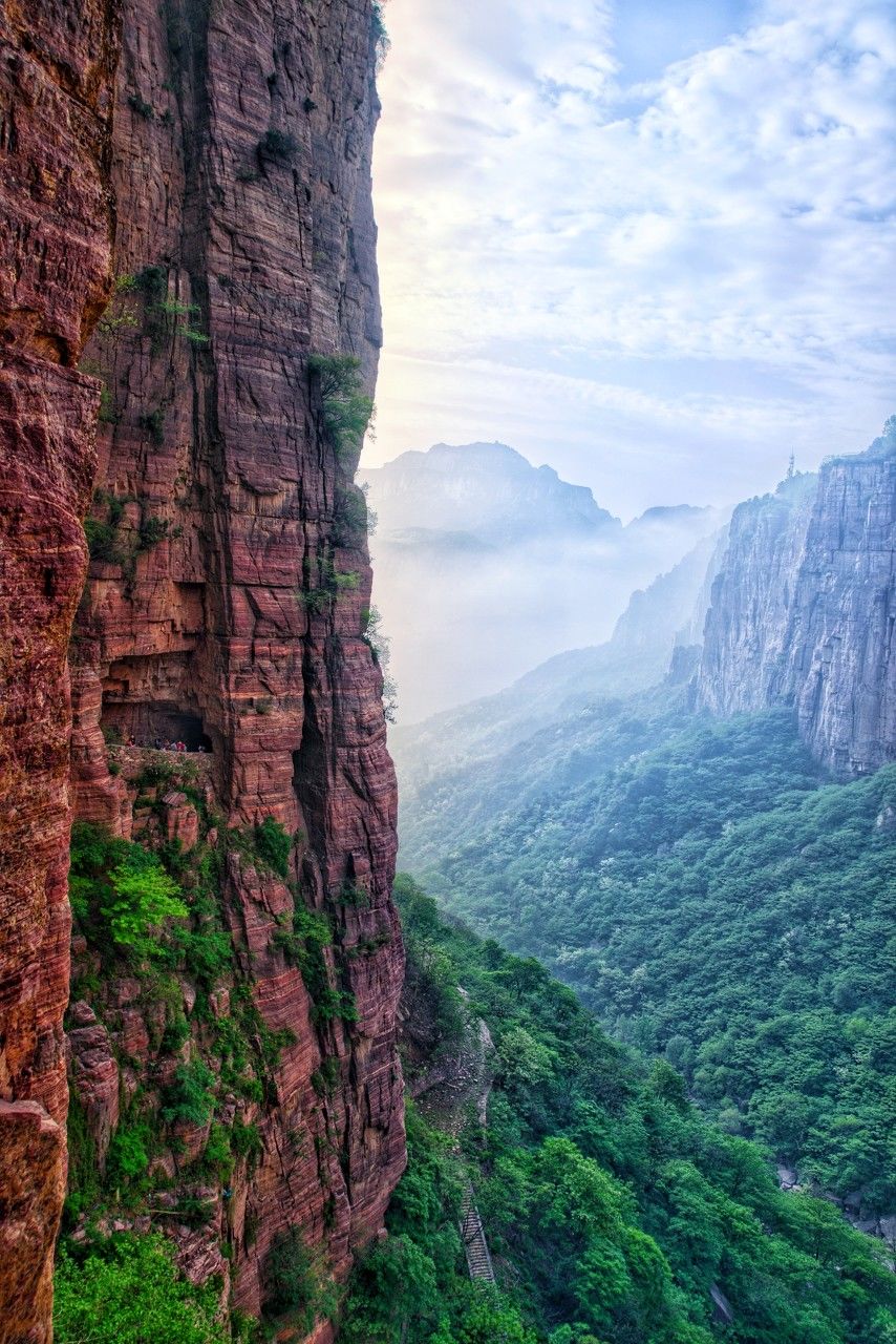 郭亮村依山势坐落在千仞壁立的山崖上,地势险绝,景色优美,以奇绝水景和绝壁峡谷的“挂壁公路”闻名于世。