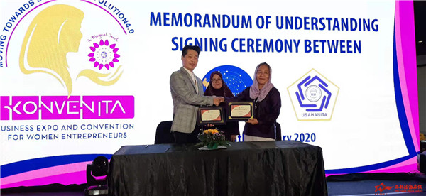 KONVENITA组委会还特别邀请了一带一路东南亚非政府组织联盟主席何健维参加本次盛会,并在大会上发表“如何推动马来西亚妇女组织参与到一带一路机遇中来”的专题演讲,并与马来妇女协会主席拿督法里达在现场签订“共同推动马来西亚妇女协会与中国妇女各界的交流与合作项目。”