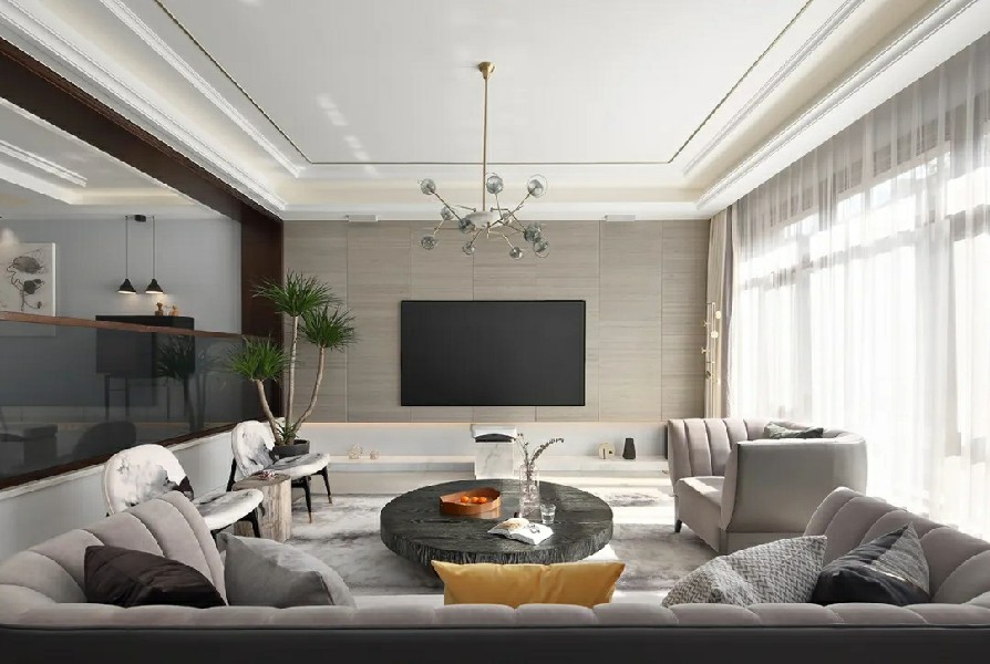 宽敞的主卫,用山水的马赛克平衡了空间大面积的灰调,更添暖意与舒展。