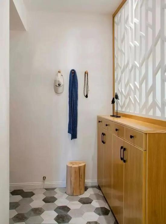 鞋柜结合隔栅的设计,更好的对空间区域进行分割,而且不影响空间的通透性,视觉上也更美观。