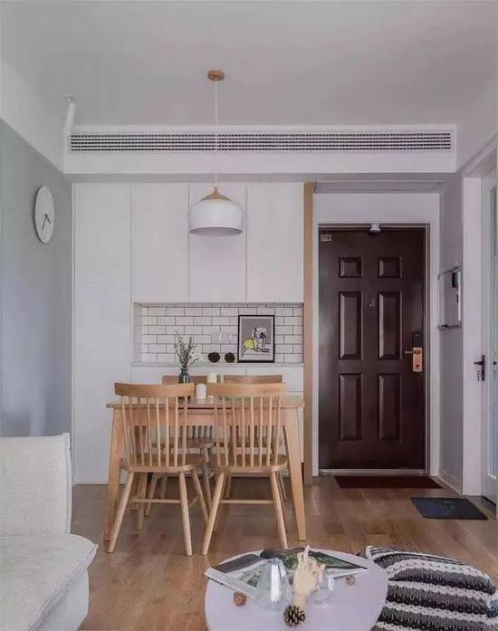 对于无玄关的户型,如果不考虑隐私,只考虑实用性与美观,采用吸睛的形式或者是靠墙的定制柜都可以。