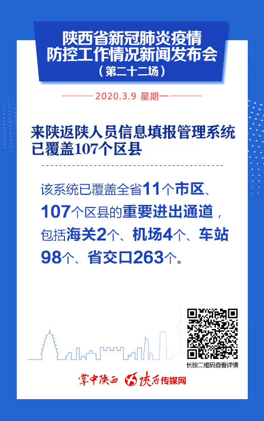 针对陕西省疫情防控形势变化,按照“外防输入”要求,组织精兵强将,昼夜加班,连续奋战,抢时完成来陕返陕人员信息填报管理系统研发并上线运行。目前,该系统已覆盖全省11个市区、107个区县的重要进出通道,包括海关2个、机场4个、车站98个、省交口263个,在有效防控外部输入方面发挥了重要作用。同时,陕西省大数据集团有限公司配套上线“健康陕西”APP(管理端),为各疫情防控站点提供信息化管理工具,基本实现了省、市、县、镇、村(社区)、组(小区)的六级疫情实时动态监控。
