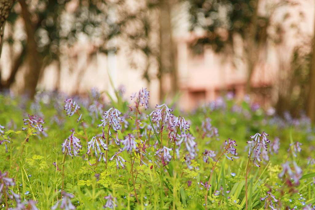 浙江农林大学校园里春暖花开,各种小花迎风绽放,风景迷人美如画。