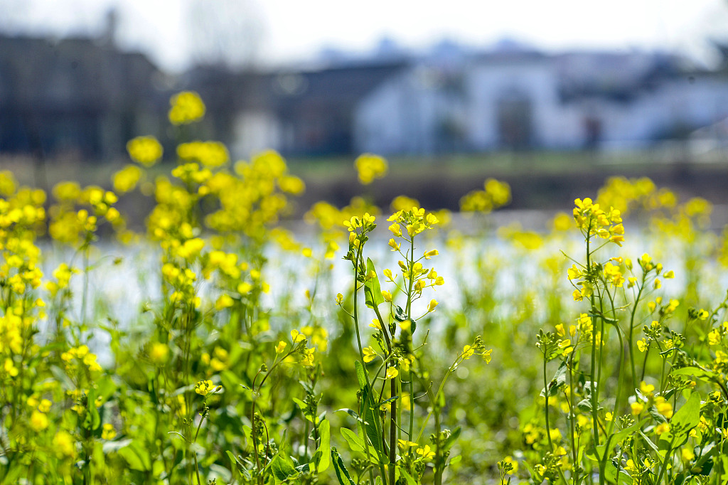 初春时节,贵州省遵义市仁怀市高大坪镇银水村,民居掩映在竞相绽放的油菜花间,天青水秀,花黄叶绿,让人流连忘返。
