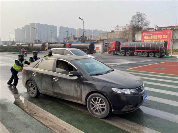 秦汉交巡警大队开展“防疫情、保畅通”道路安全整治工作,24小时加强道路巡逻防控,为辖区企业、单位的复工复产提供安全、畅通、有序的道路交通环境。