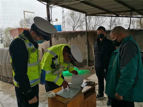 双照交巡警中队深入辖区运输企业调查复工复产时间、人数、车辆、返岗交通方式等情况。民警对企业已经复工的驾驶人进行全面“体检”,确保人员安全上车、车辆安全上路。