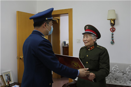 3月18日,陕西省军区西安第十一干休所长韩军科、政委郭丽莉带着鲜花和捐款收据,送去他们对老首长、老阿姨在抗击新型冠状病毒中献出爱心的敬意和谢意。
