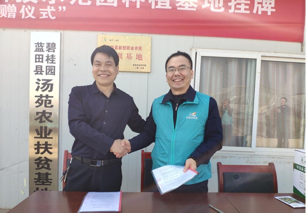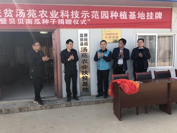 碧桂园汤苑农业产业基地建立伊始就受到当地各级政府部门的大力倡导和政策扶持。本次产业基地揭牌暨贝贝南瓜种子捐赠活动,由蓝田县扶贫办、教科局、农业局及乡镇政府各级领导及碧桂园陕西区域三县扶贫负责人共同完成。据了解,此次碧桂园陕西区域捐赠4万元,用于采购20亩贝贝南瓜种子,以及的相关技术人员的聘请。