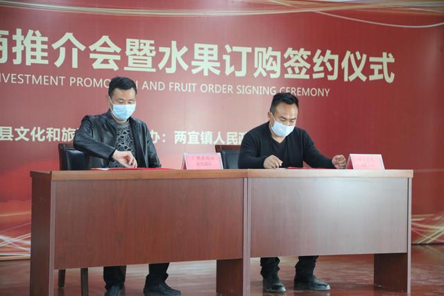 随后举进行了两宜镇水果订购签约仪式,会上成功签约了签订桃、李子共计500万斤的购销项目合同;水果购销合作书;桃子购销合同;水果代销合作协议书,取得了良好的成绩。