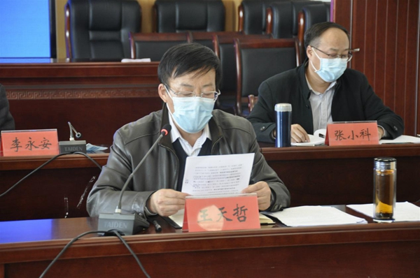 王天哲向在疫情防控期间做出突出贡献的部门和职工表示了衷心感谢,并提出三点要求:一是高度重视,认真落实、落细教务处、学工部(学生处)、后勤处、招就处、宣传部(扶贫办)制定的工作方案。各部门要明确责任,主动作为;二是全面开展各项工作。要转变工作方式和节奏,统筹安排好各项工作;三是希望大家继续做好疫情防控、在线教育教学、教学质量监控、学生管理辅导、招生就业等重点工作,并按照“目标不变、任务不减、责任不轻”的要求全力推进。