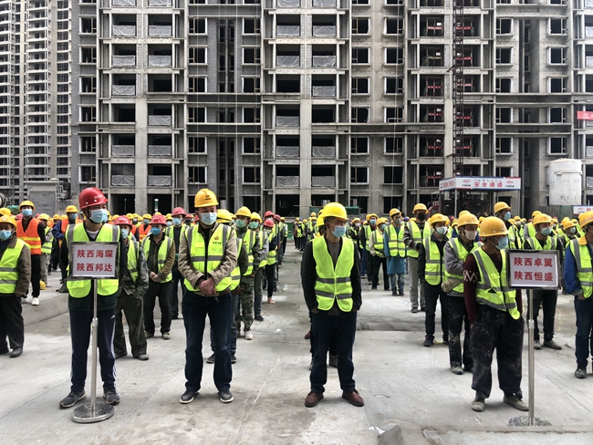 “防疫防控当前,尽快、稳妥地恢复生产同样重要。目前现场返工651人均已做完核酸检测,确保现场“零”确诊和“零”疑似,各楼栋复工复产工作已经全面开展。”中铁建设集团西北分公司万和郡项目负责人寇佳佳向记者说道。