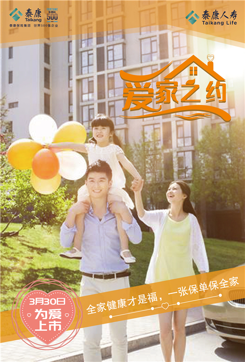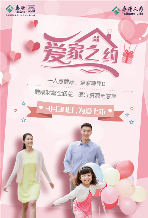 泰康人寿爱家之约,全家健康才是福,一张保单保全家,3月30日,为爱上市!