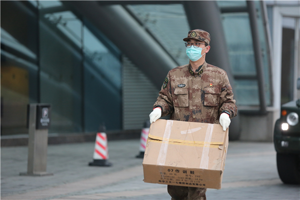 经过一上午的物资搬运,每走一步仿佛都比上一步更吃力了。阴雨绵绵的武汉,李田锋、金蕴韬、冯俊凯、张国恒几个大小伙子的额头上已经冒出了豆大的汗珠。药品、防护物资、办公物资,一车一车源源不断地从库房送到病区。
