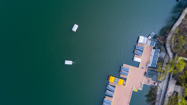 目前,翠华山景区的十八盘 、天池、冰风洞、山崩景区已全面开放,航拍镜头下天池宛如一块碧绿的宝石。