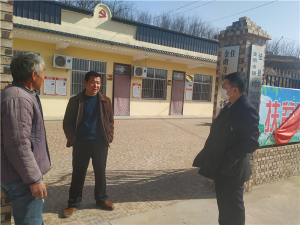 工作队一行抵达申家沟村后,与村支书等村干部就近期疫情防控期间,村子、村民的防护措施以及当地政府关于扶贫方面最新的政策、扶贫工作的最新要求进行了交谈,对今年如何做好贫困户脱贫之后的巩固提升做详细的规划。