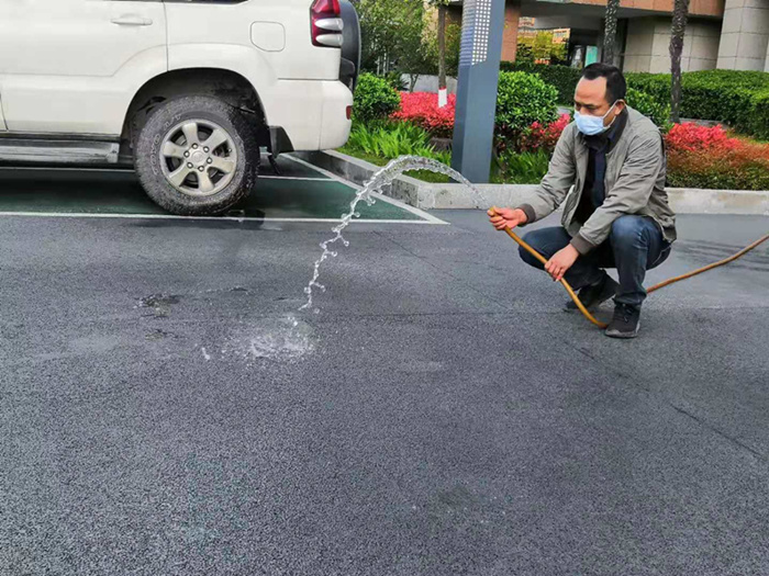 在示范展示项目中国电建西北院,工作人员现场演示了海绵城市路面的吸水性。记者看到,通过水管排出的自来水在路面迅速消失,如同被海绵吸收一样,小区道路变成“会呼吸的路”。