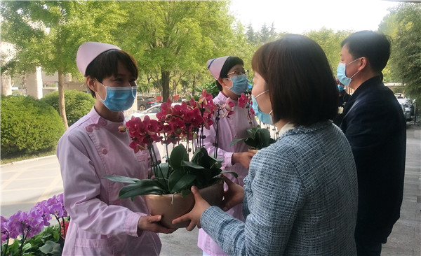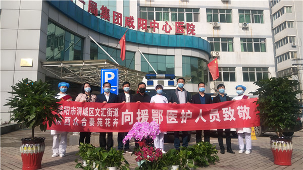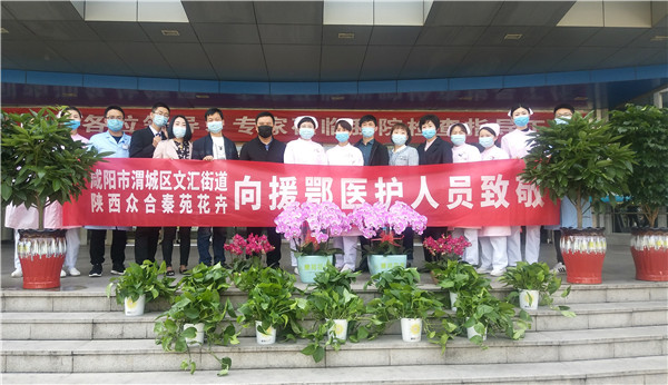 4月14日,咸阳渭城区文汇路街道联合区卫健局、陕西众合秦苑花卉有限公司,为5名渭城区援鄂归来的医护人员赠送全年总价值约10万元寓意吉祥的名品花卉,同时为他们提供了为期一年的花卉更新养护服务。